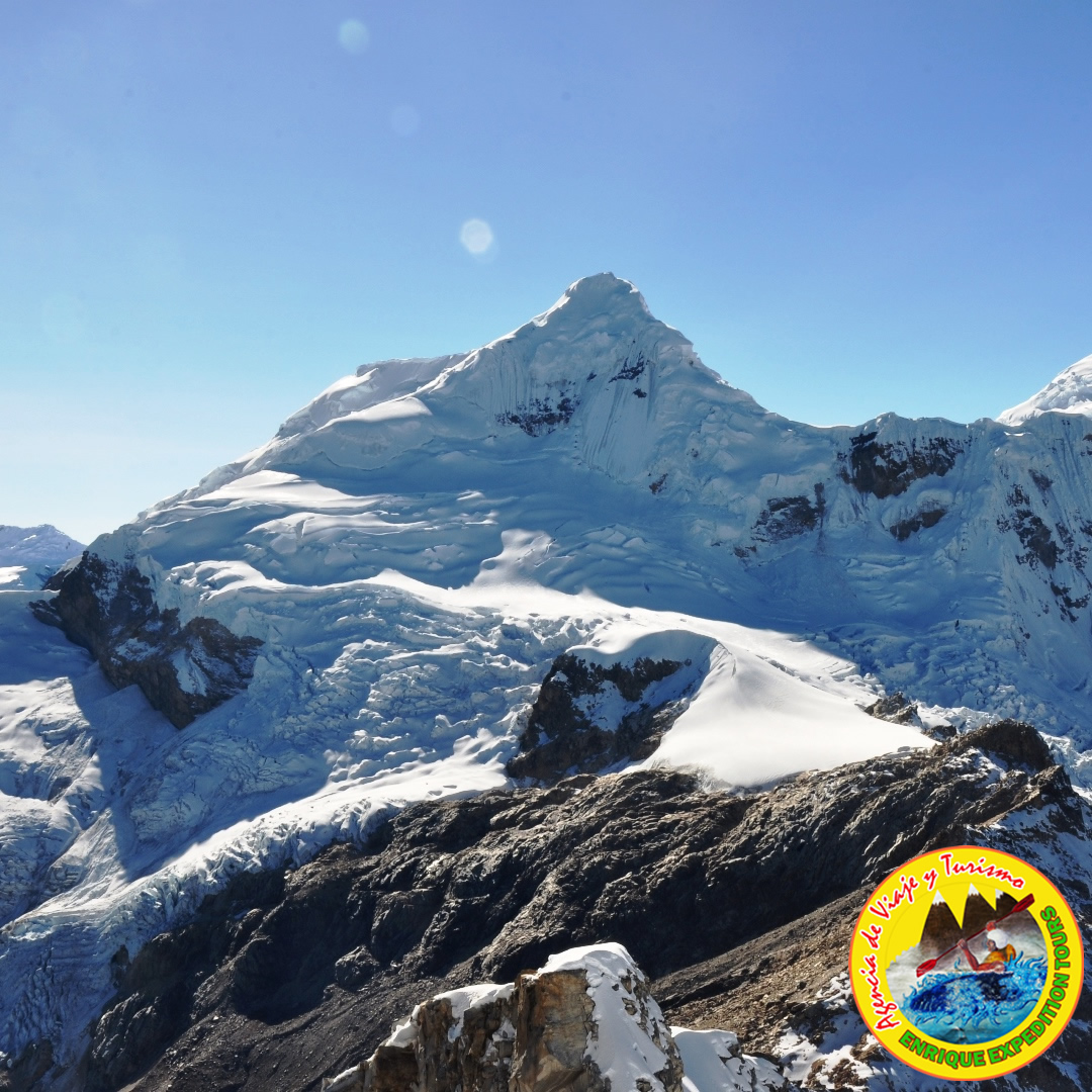 This day we will attack very early (3-4 am) Tocllaraju summit (6034m). We will cross the glacier in the north N and ascend to the mountain pass with Aquilpo South. By climbing the NE ridge we will have slopes of 55 to 60° and a rimaya in its lower part and a harder part close to the summit. We will cross the rimaya and climb up directly to the summit. Afterwards we will return to our