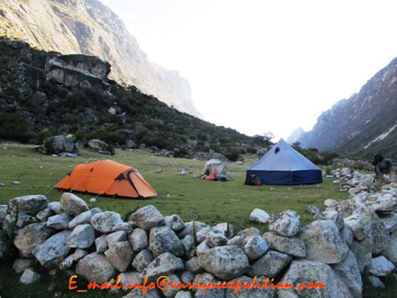 Este ultimo día de nuestros expedicion estaremos descendiendo por la quebrada de Santa Cruz hasta el poblado de Cashapampa, en donde nos espera el vehiculo de la compañía “Enrique Expedition Tours” para trasladarnos a Huaraz – Hotel.