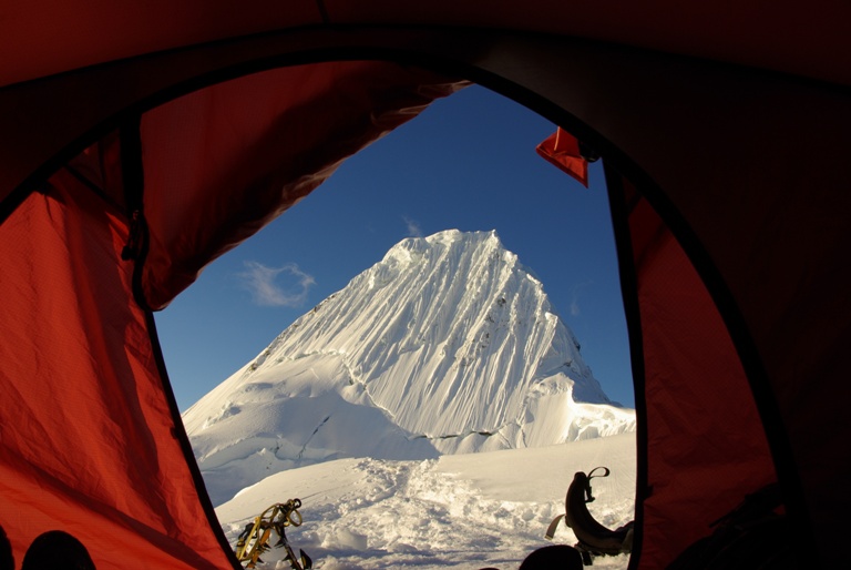 Desde el Campamento Llamacorral después de un buen desayuno salimos y dirigiéndonos hacia la quebrada de Santa Cruz, pasemos por la laguna Icchicocha y Jatuncocha hasta llegar al desvió de la quebrada de Arhuaycocha desde donde ascendimos por un zigzagueante camino de herradura hasta alcanzar el campo base del Alpamayo en donde realizaremos nuestros segundo día de campamento (horas aproximadas de Trek 6 horas.).
