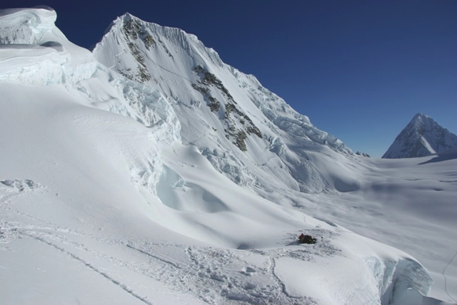 This day we will continue climbing up directly towards the shield, which is observed - as we move forward - like a triangular hill of about 450m. Once we will be at this place we will pass it. After passing this obstacle, we will ice climb some sections. We will reach by cross climbing the neck, under which in a protected area of avalanches we will build up the Camp 2 of Huascaran (6000m).