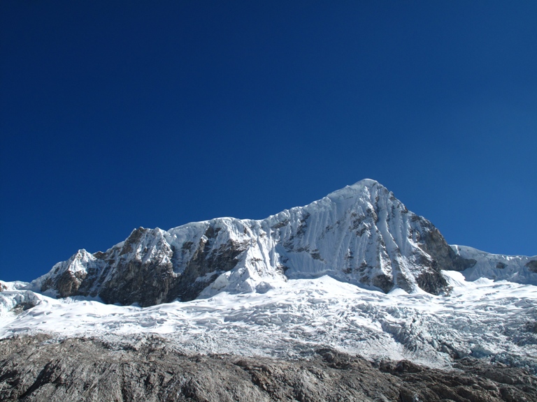 Saldemos del campamento a las 1:00 am siguiendo a nuestro guía, iniciaremos la escalada pasando por una zona de hielo hueco o mixto y ascender la uniforme pendiente por el centro. En la ruta de ascensión SE la pendiente se inclina a 3 largos de la Cumbre el cual será superado por la derecha, tras varias horas de escalada estaremos llegando a la cumbre - cumbre sentiremos una sensación increíble y tendremos una vista de los nevado Alpamayo,Huandoy, Huascarán, Pirámide, Pisco…...Luego el retorno emprenderemos unas largas líneas de rápeles sobre estacas fijas para luego estar llegando Campo alto – Morrena.