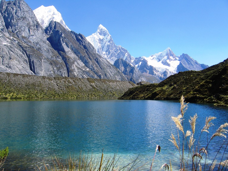 We will leave the city of Huaraz by private bus to Pitec (3850m). First we will pass the colorful villages of Llupa (3650m) outside of Huaraz, where we will have a panoramic view of the southern part of the Cordillera Blanca. Arriving in Pitec we start the hike to the Lake Churup at 4450m. First we enter the valley of Churup, after some hours of walking we will reach the Lake Churup, where we will stay for one hour before we return to our hotel in Huaraz.