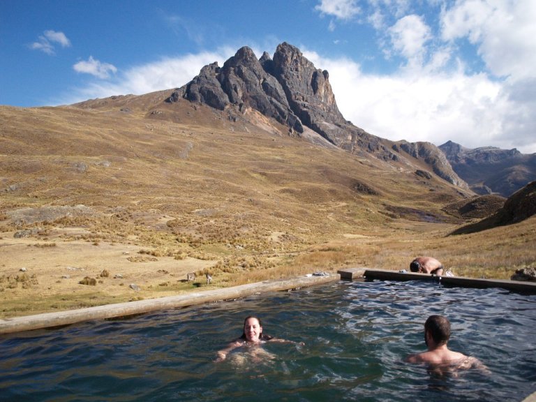 We will leave very early to pass the fourth pass of Portachuelo (4750m). There we can see the mountains Puscanturpa, Cuyoc, Millpo and a part of the Cordillera Raura. After we will arrive at our campsite in Viconga (4300m) you will have the chance to take a bath in the hot springs of Atuscancha (4000m).