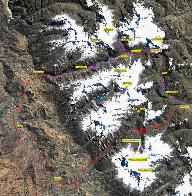 Mapa del Trekking Santa Cruz – Llanganuco Cordillera Blanca - Perú |