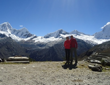 Vinimos con poco tiempo para tanta montaña y tan altas, con seis días en Huaraz no tienes ni para empezar. Aún y así, tuvimos la suerte de caer en la oficina de Enrique. Nos organizó con mucho acierto el trekking de Santa Cruz, en tres días, y el Ishinca en tres más. Pues resultó un éxito, fuimos a Santa Cruz con Scheler. Lo pasamos muy bien, ya que la naturaleza es espectacular y el guía que llevábamos nos hicieron disfrutar de lo lindo de tres días de montaña. La altura ha sido a lo largo de toda nuestra estancia el único inconveniente. Los tres últimos días, fuimos con Francisco a hacer el Ishinca, notamos enseguida que el guía era muy experimentado. No llegamos a la cumbre, pues la altura multiplicó el cansancio y nos tuvimos que quedar en el collado, la vista ahí es fantástica. Imaginamos que en la cumbre la vista será mejor, pero preferimos llegar sanos y salvos, así es la montaña. Nosotros pensamos volver, y seguro que volveremos a contactar con Enrique y sus guías. A Enrique le decimos que cuide a sus guías que son unos profesionales de la montaña de pies a cabeza. Os recordaremos.