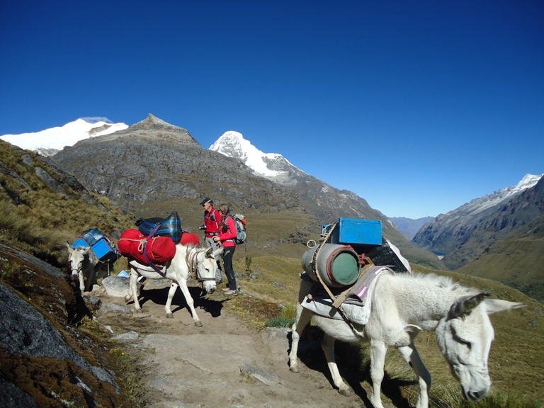 Recojo del Hotel y traslado en trasporte privado de Huaraz hasta la ciudad de Yungay - Caraz, desde este lugar estaremos desviando hacia la porte Este de la Cordillera Blanca hasta el poblado de Cashapampa en donde nos esperan el arriero que conducirá los burros quienes se encargaran en para trasladar el equipo persona y de campamento, después estaremos comenzando el trekking hasta Llamacorral (3760). Campamento.