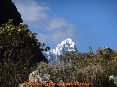 Posteriormente estaremos retornando unos 180 metros del Campamento, luego se sube a la derecha por un sendero demarcado, después de 2 horas de caminata llegamos Campo Morena del Vallunaraju (5000m).