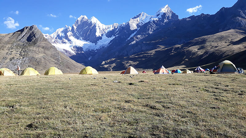 Salimos de campamento y estaremos realizando 2 pasos , Tapush ( 4800), yaucha ( 4800) para estar llagando a la Laguna Jahuacocha en donde Tendremos una vista Panorámica de parte de la Cordillera Huayhuash entre ellos al Yerupaja, el Hirishanca, Carnicero, Siula, Trapecio etc. , campamento Jahuacocha ( 4100)