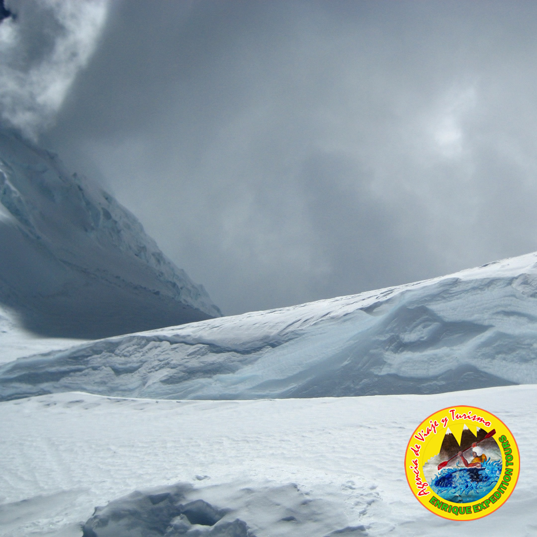Este día seguimos ascendiendo directamente en dirección al Escudo, que se observar según avancemos como una loma triangular de aproximadamente 450m. Una ves que nos encontremos en el lugar estaremos superándole, escaldando algunos tramos en hielo, después de pasar este obstáculo. Estaremos avanzando en travesía ascendente hacia la Garganta, bajo el cual en una zona protegida de avalanchas se instalara el C2 del Huascaran (6000m). Jornada de aprox. 6 – 7 horas.