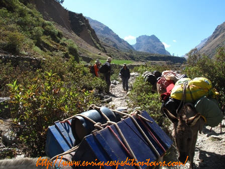 Caminata de 5 a 6 horas.Saliendo del campamento estaremos descendiendo por la quebrada de Hunacpatay, hasta llegar a pueblo de Huayllapa - Campamento.