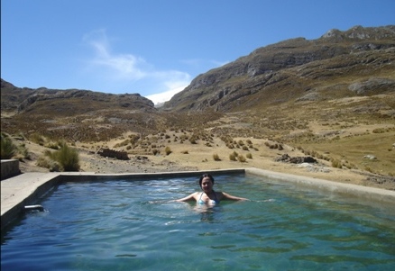 Se pasa el cuarto paso de Portachuelo (4750). Se observa los nevados de Puscanturpa, Cuyoc, Millpo, y parte de la Cordillera Raura. Llegada a nuestro campamento en Viconga (4300). Tarde para aprovechar de un baño en las aguas termales de Atuscancha (4000).