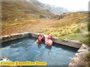Caminata de 5 a 6 horas. Se pasa el cuarto paso de Portachuelo (4750). Se observa los nevados de Puscanturpa, Cuyoc, Millpo, y parte de la Cordillera Raura. Llegada a nuestro campamento en Viconga (4300). Tarde para aprovechar de un baño en las aguas termales de Atuscancha (4000).