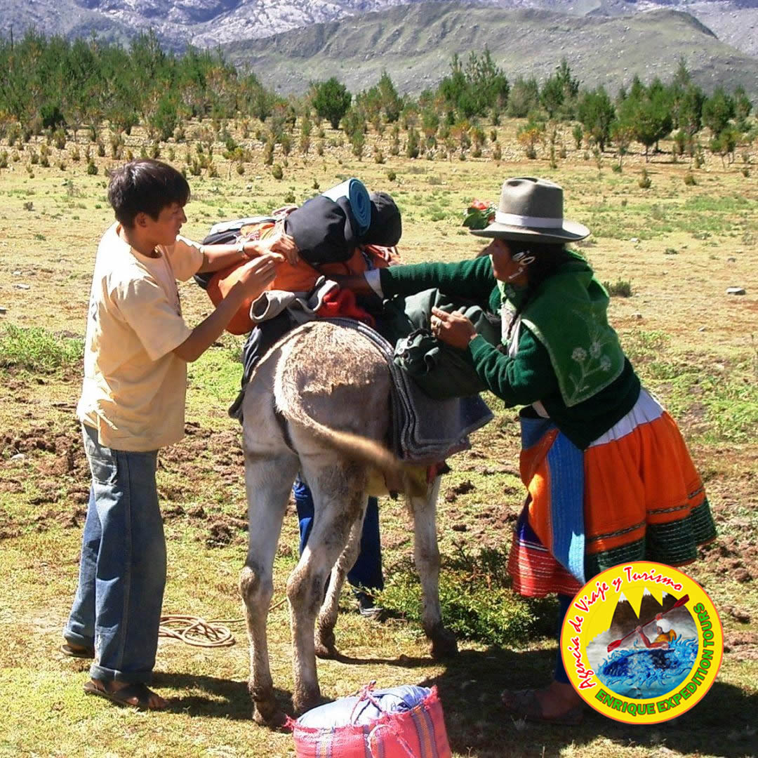 Recojo del hotel y traslado en transporte privado a la parte Norte de Huaraz hasta el pueblo de Paltay, desde este punto estaremos desviando a la parte Este del Callejon de Huaylas subiendo por un corto amino hasta el pueblo de Pashpa en donde nos espera el burros y arriero que trasportara el equipo de campamento y escalada hasta el Campo base de la Quebrada de Ishinca – Campamento.