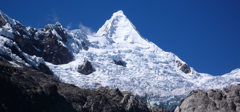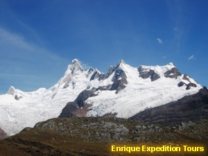 Passing the second pass of our trekking which is called Cedros (4750), we cross the mountain ravine of Cedro and Alpamayo. Now we visit  archaeolocigal ruins (circles, agricultura terraces from the culture of Recuay). We see the mountain tops of  Millhuacocha, Pilanco, Pumapampa, etc. and continue our way until we reach  Jancarurish. From this place we have a phantastic view to the ALPAMAYO (5947), the most beautifulst mountain of the World. Walking time about 6-7 hours.