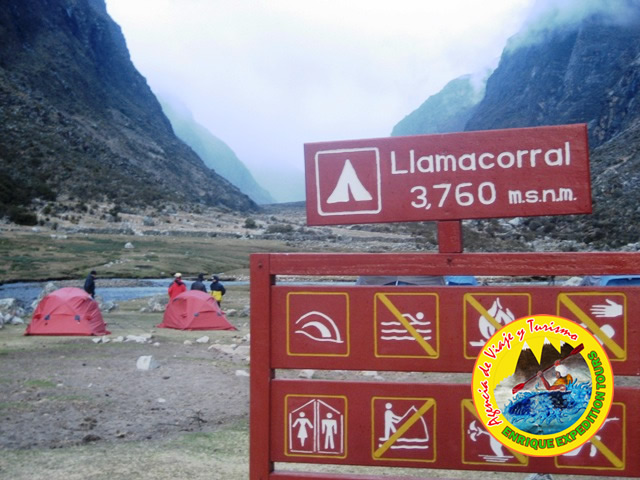 06:30 AM. Recojo del Hotel y traslado en trasporte privado de Huaraz hasta la ciudad de Yungay - Caraz, desde este lugar estaremos desviando hacia la porte Este de la Cordillera Blanca hasta el poblado de Cashapampa, en donde nos esperan los arrieros que se encargaran en la conducción de los burros quienes trasladar el equipo persona y de campamento, después estaremos comenzando el trekking hasta Llamacorral (3760m). Campamento.