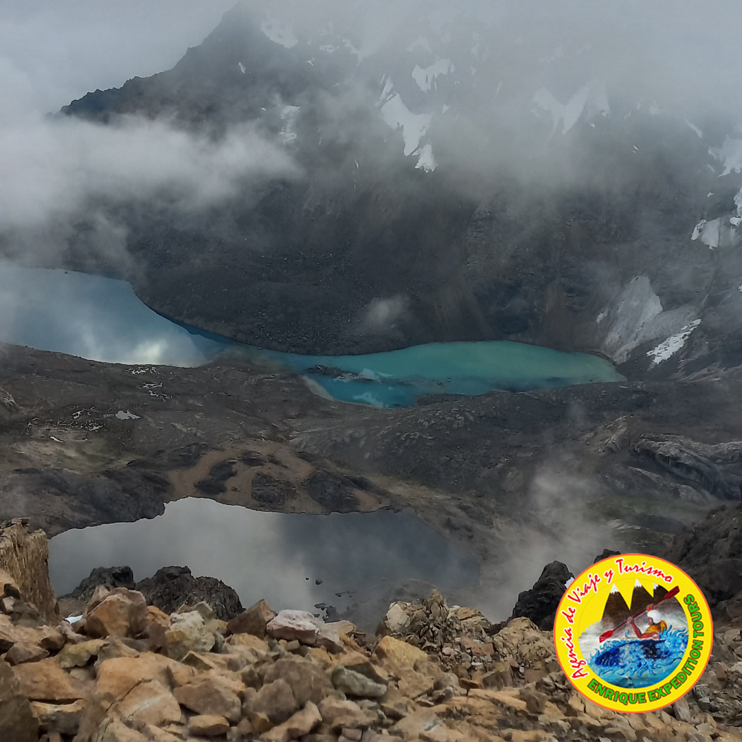 Caminata de 6 – 7 Horas. Se pasa el tercer paso de Carnicero (4600). Descenso por en medio de las Lagunas de Atocshaico, Carnicero. Observamos los nevados Siula, Jural, Carnicero y Trapecio.